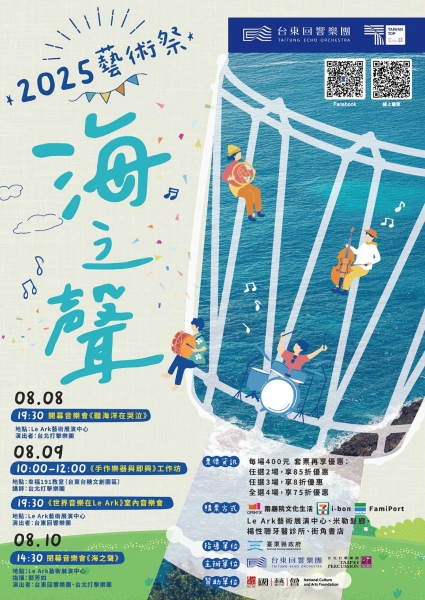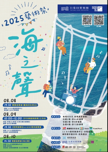 2025夏天,台東回響樂團再度舉辦兩年一度的藝術祭,與台北打擊樂團攜手打造為期三天的夏日音樂盛典《2025藝術祭—海之聲》。