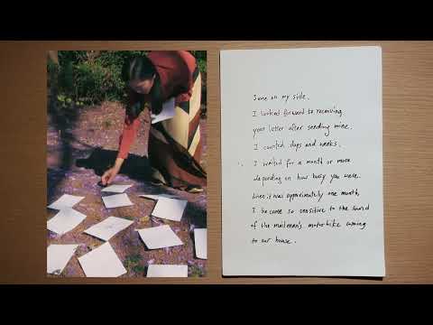 「Mahangaiko」在非洲斯瓦希里語,意指一種等待的時間感,不確定此時的等待何時會結束。有別於有效率產出的行為思考模式,我學習緩慢、學習等待。回到手寫書信的時空,有別於即時性的溝通科技,我緩緩地告別逝去的生命和親情。同時,我也觀察著坦尚尼亞當地的非洲紫葳,好奇非洲紫葳花的墜落如果是一種書寫,那會是什麼樣的時間感和方式,而我又會如何閱讀。