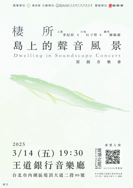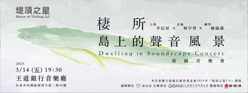 《棲所—島上的聲音風景》音樂會,獲王道銀行教育基金會「堤頂之星 2.0」補助(音樂展演類)
