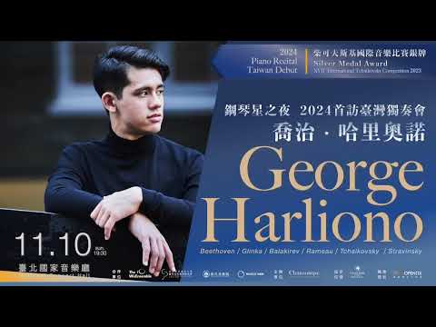 甫獲得「2023年柴可夫斯基國際音樂大賽銀獎」殊榮的傑出鋼琴演奏家喬治・哈里奧諾(George Harliono),首次訪台舉辦獨奏會。身為國際頂級音樂大賽得主與獨奏家,國際邀演行程密集,哈里奧諾特別安排臺灣行,作為亞洲巡迴的重要一站。這位享譽國際的音樂新星,充滿期待地為樂迷們精心準備貝多芬、巴拉基列夫、拉摩、史 特拉汶斯基……等廣泛且精彩絕倫的音樂作品。