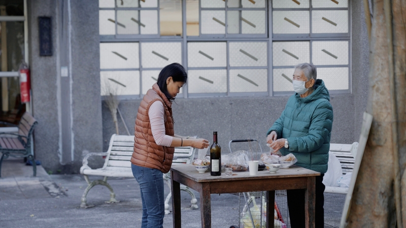 相較於老兵們,這群女性眷屬和遺孀的身影是更不被外界看見的。這群女性與老兵一樣,都是移動者、同是異鄉人。這幾十年,她們也同樣生活在這小小的單身宿舍裡。身體和鏡頭帶領著我,原先女性群像在老兵背後模糊的身影越發清晰,我慢慢看見她們,聽她們說自己的故事。儘管她們生命有許多無奈與妥協,卻也在移動的縫隙間閃爍堅韌的光。