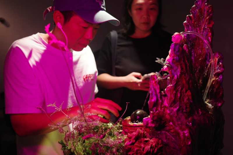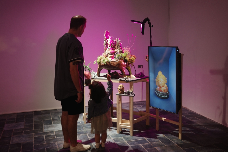 一直以來,我對親友家中如紫水晶洞、風水畫、鹽燈等民俗擺設深感困惑與著迷。這些非主流的審美語言呈現出一種獨特的民間美學視角。2013年,我在高雄大林蒲認識藝術家楊富明,他以水鑽與現成物打造的庭院空間,促使我思考:如果是我,我會如何建構自己的居家美學?