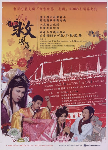 「白雪綜藝・劇團」2008年度製作《胡BB風月救風塵》,重新詮釋家暴與姐妹義氣主軸之關漢卿著名雜劇《趙盼兒風月救風塵》,再度顛覆觀眾的視覺與性別界線。由睽違10年未同台的兩大反串台柱「松田丸子」、「胡BB」擔綱演出,除維持一貫的極致華麗歌舞戲劇風格,更將全數以男性演員詮釋青樓女子。