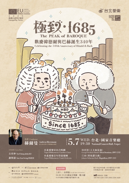韓德爾與巴赫這二位作曲家皆誕生於1685年,對後世音樂作品產生巨大的影響。韓德爾(Georg Friedrich Händel, 1685-1759)被譽為巴洛克時期最偉大的作曲家之一,其作品《水上音樂》、《皇家煙火》至今仍然廣為人知,而其神劇《彌賽亞》更被視為曠世巨作,名列音樂史上三大神劇之一。《上主如是說》(Dixit Dominus, HWV232)是韓德爾早期最重要也最具野心的代表作,深受義大利風格影響,不但展現出他不凡的作曲才華,還預示了強烈的個人色彩,奠定了他未來的大師之路。2025年,台北愛樂室內合唱團首度邀請德國慕尼黑愛樂合唱團藝術總監赫爾曼(Andreas Herrmann, b. 1963)訪台客席指揮,獻上韓德爾及巴赫音樂生涯當中最關鍵性的人聲作品,歡慶巴洛克時期二位偉大作曲家誕生340年。