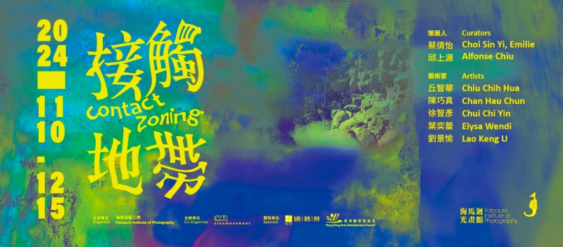 香港媒體研究學者蔡倩怡及新加坡策展人邱上源共同策劃的《接觸‧地帶》以跨地域的移動路徑作為研究線索,在2024年11月10日至12月15日展覽期間,邀請藝術家葉奕蕾(香港/新加坡)、陳巧真+徐智彥(香港)、劉景愉(澳門)及丘智華(臺灣),展出四組作品,包含單頻道投影、雙頻道同步錄像、五頻道影像裝置、一組聲音及現場裝置,以不同的藝術實踐和視角呈現身體的多元表達方式,連結參展人員籌畫「跳格—香港國際舞蹈影像節」的背景,在實驗、身體、舞蹈影像的豐厚積累,開展出跨文化語境的創作想像。