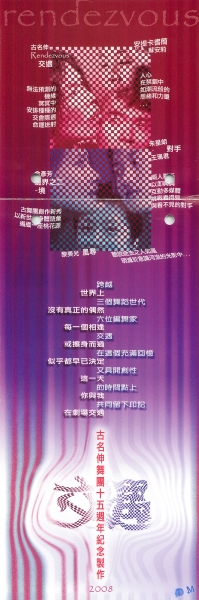 古名伸舞團一向以編舞創作為舞團營運發展的重要目標。自1993年創團以來,到今年2008年即將屆滿15週年。檢視過去,舞團對於創作人才的鼓勵與培養,這些年來也累積了很多的能量。在舞團15週年慶的演出時,我們特別邀請了3個世代的6位編舞創作者,集結10位各具特色的舞者,展現舞團多樣的風格,推出橫跨現代舞、接觸即興、影像多媒體及戲劇性的舞蹈接力賽。