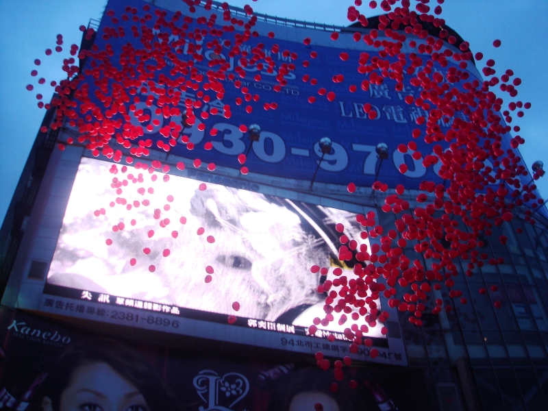 開幕活動當天於西門町電視牆撥放作品《失訊》並同時施放400顆氣球,吸引眾多觀眾參與,並將原本商業性的空間電視牆,轉換為一種重新觀看與對應自我存在的方式,這樣的重新觀看也建立起一種藝術與城市空間新的對話方式。